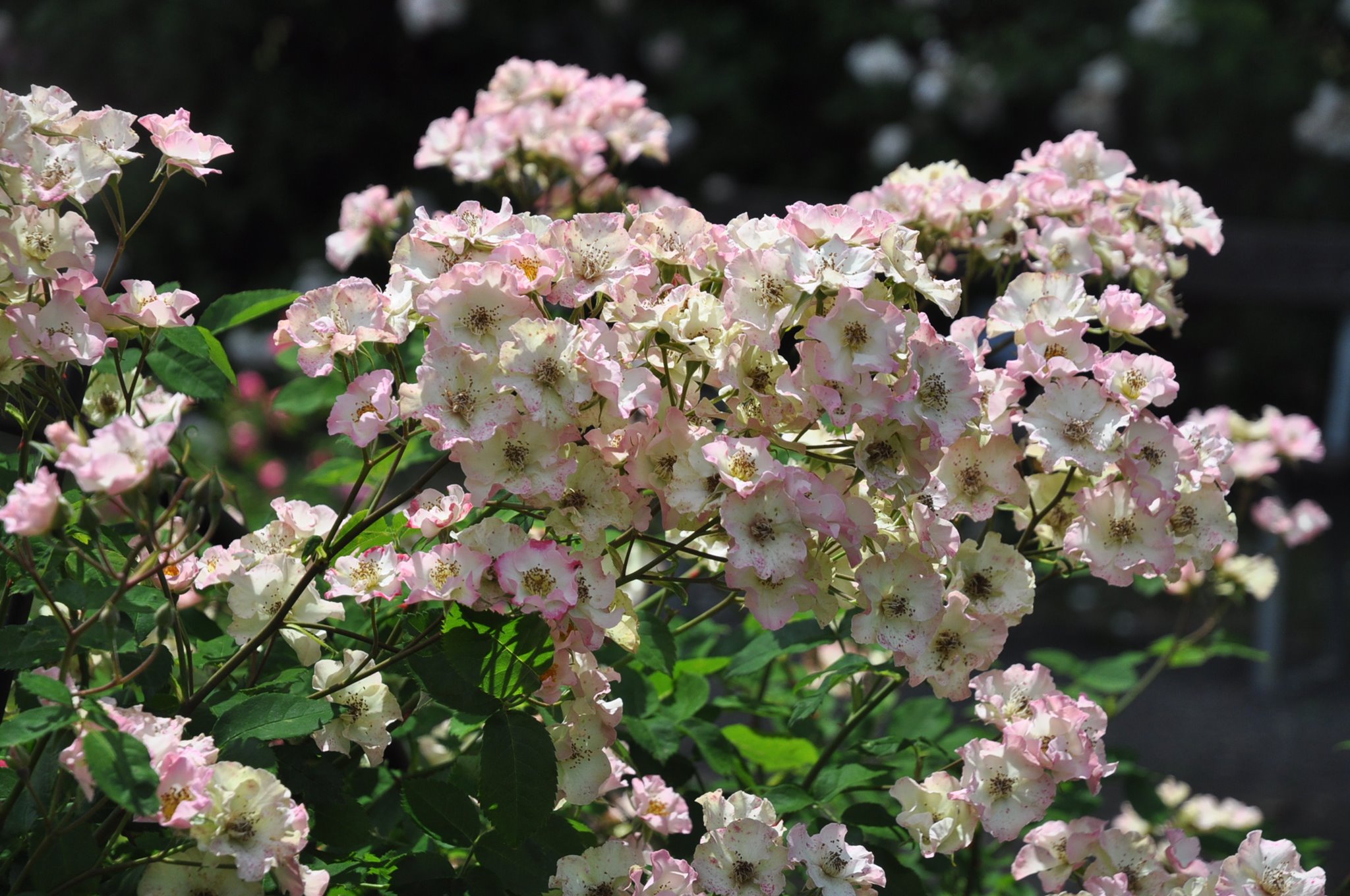 Bedding roses are planted in the amount of 5 pcs in square plots, varieties of shrub and climbing roses in the amount of three pieces each attached to constructions. Evaluation takes two to three years, continuously the permutation of new cultivars of roses occurs. About 220 cultivars are cultivated in the amount of about 1,000 rose bushes.
