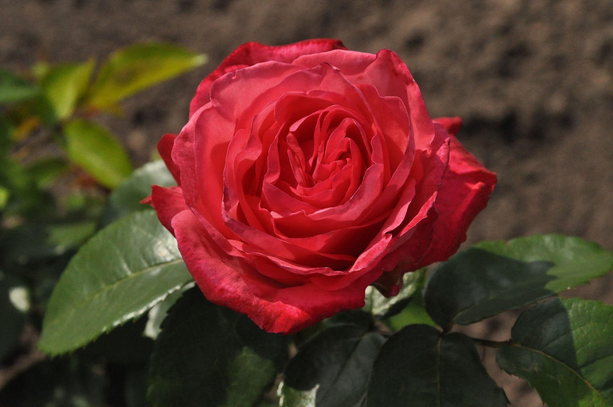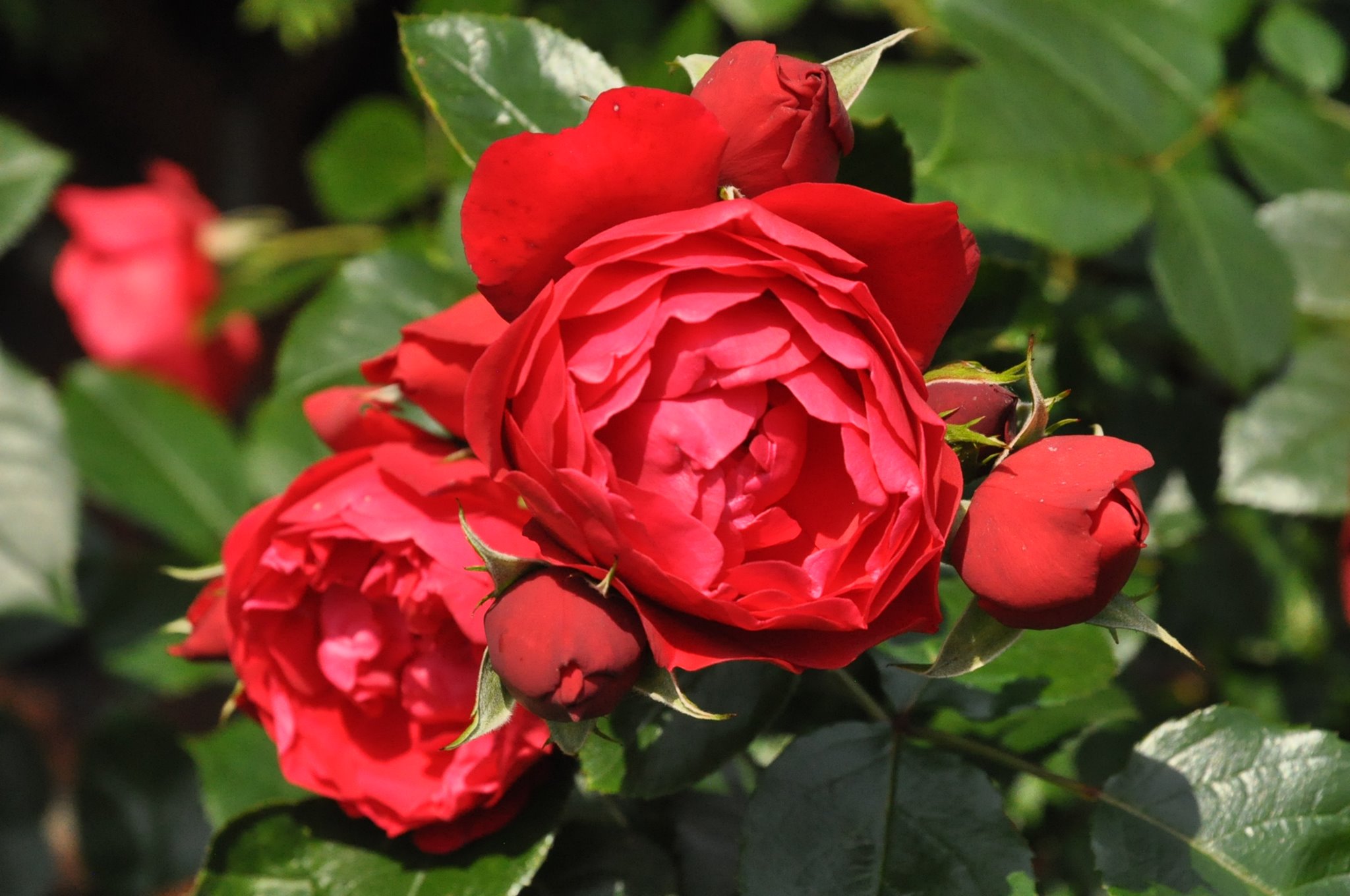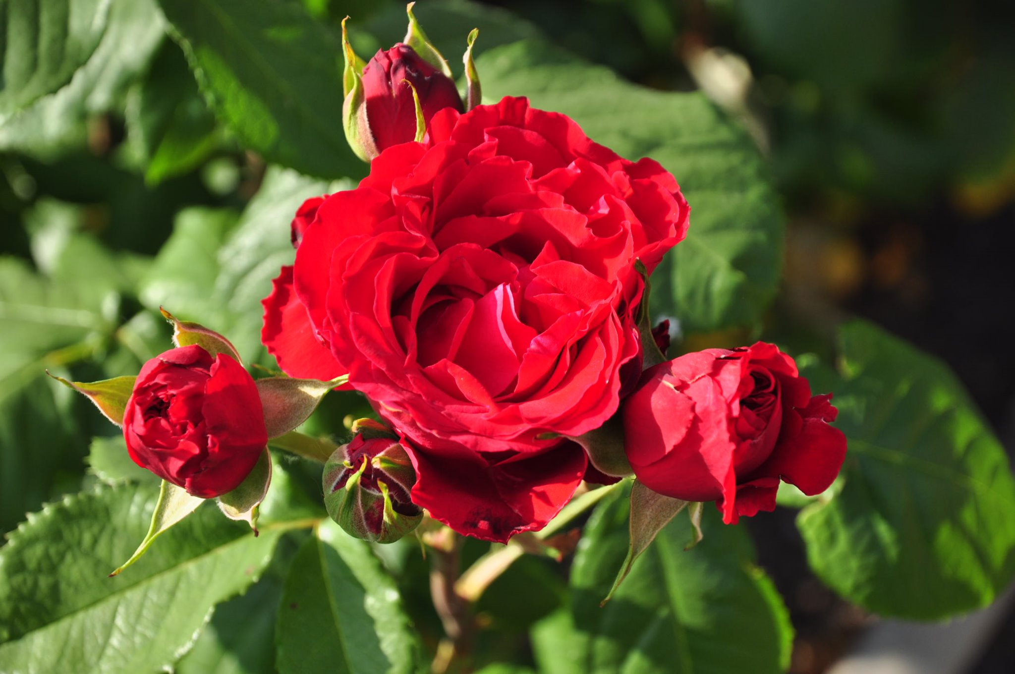 It is a rose with a simple flower, height of around 40-60 cm, upright growth, the leave is dull to semi-gloss, the colour is an intense hot red. The rose is very healthy, its understated elegance and beauty becomes apparent especially in large groupings and plantings.